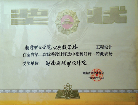 湖南省優(yōu)秀設計項目二等獎(1984)