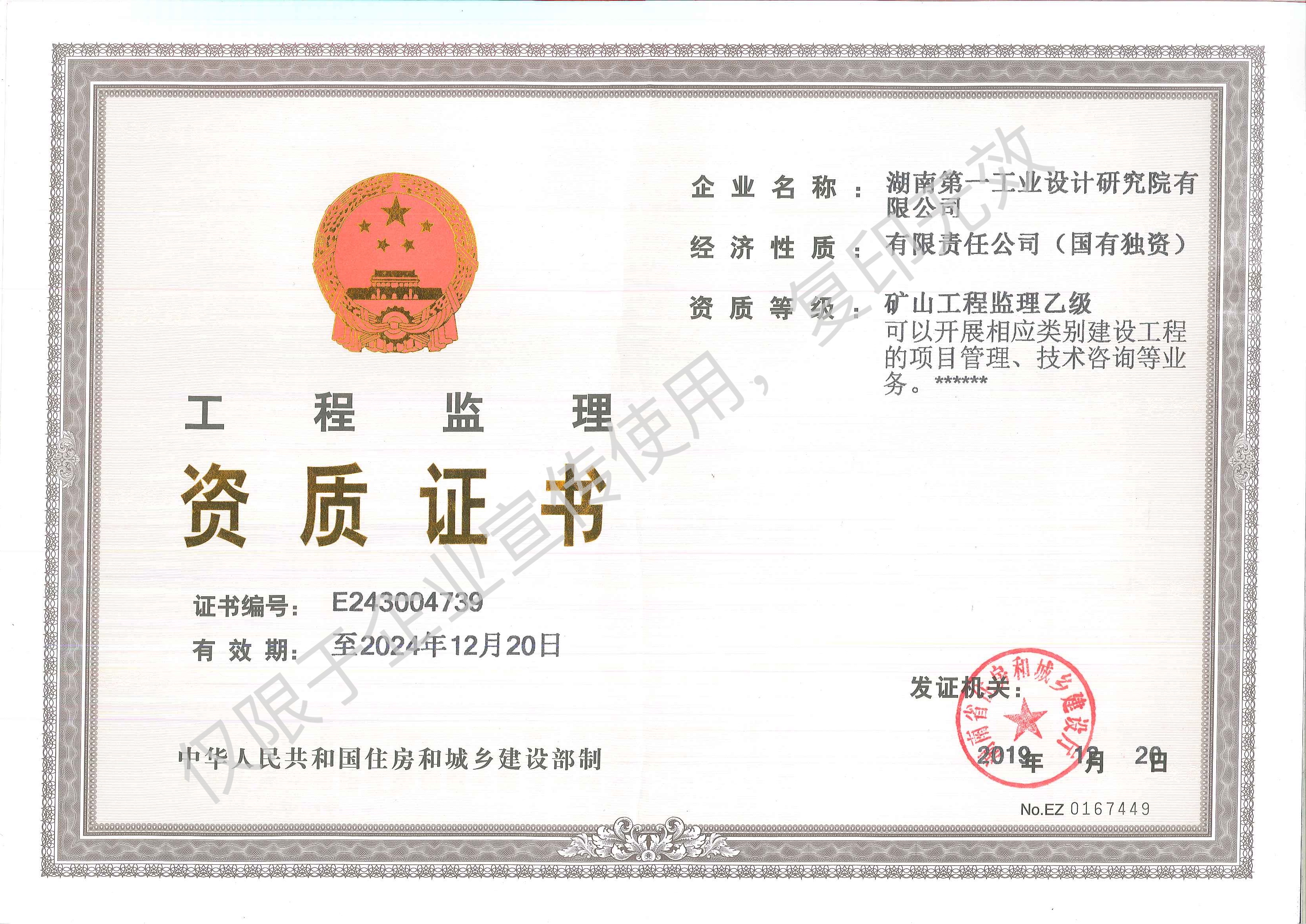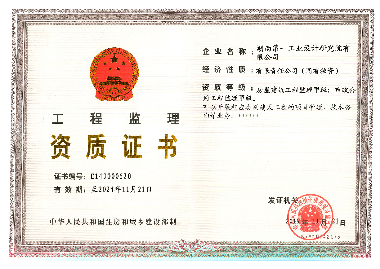 工程監(jiān)理企業(yè)資質證書